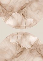 Collage van aquarel vormen met marmerlook. Twee halve cirkels in lichtbruin. Modern abstract en minimalistisch.