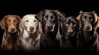 Collage van verschillende honden geïsoleerd op zwarte achtergrond