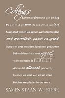 Koop dit digital art kunstwerk Collega's - Taupe - Motiverende tekst van Sandra Hazes als reproductie op canvas, aluminium dibond, (ingelijste) fotoprint, behang en ArtFrame, op maat geprint in Fine-Art kwaliteit.