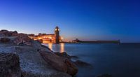 Historische vuurtoren, vandaag de dag een kerk in het beroemde historische dorp Collioure in het zuiden van Frankrijk aan de Middellandse Zee.