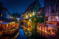 Idyllische nacht met kleurrijke vakwerkhuizen in Petite Venise in Colmar in de Elzas