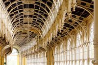 Prachtige architectuur foto van de beroemde colonnade van Mariansky Lazni in de regio Karlovy Vari in Tsjechië. Deze stalen bogen en prachtige ramen staan prachtig in ieder interieur. Binnenkort ook beschikbaar in zwart-wit.