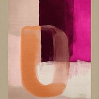 Een modern abstract kunstwerk vol zachte beweging en kleurcontrasten. Warme perziktinten en diepe bordeauxrood- en fuchsiakleuren vloeien moeiteloos in elkaar over, terwijl ronde, gebogen vormen zorgen voor een gevoel van rust en balans. De compositie is zowel speels als elegant, waardoor dit werk een verfijnde blikvanger wordt in…