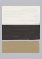 Abstract "color blocking" in pastelkleuren. Color blocking wil zeggen dat er grote vormen in verschillende kleuren naast elkaar geplaatst zijn. Dit werk is een rustgevend middelpunt aan je muur. Modern abstract werk in de kleuren wit, zwart, bruin en paars.