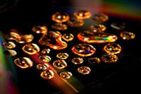 Druppels rode wijn azijn op een CD verlicht met meerdere halogeen lampen levert dit kleurenspektakel van kosmische allure ...