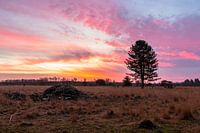 Explosie van kleuren in de lucht net voor zonsopkomst in natuurgebied ?Bergerheide', onderdeel van Nationaal Park 'De Maasduinen', Nieuw-Bergen, Noord-Limburg.