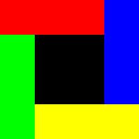 Permutatie aan de rand met rood, groen, blauw en geel (zonder zwart en wit)
