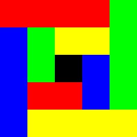 Als u voor de rand 4 kleuren kiest uit rood, groen, blauw, geel, zwart en wit, zijn er 15 mogelijke combinaties. De overige 2 kleuren blijven dan over voor het centrum. Dit resulteert in een totaal van 180 mogelijke combinaties of 180 verschillende motieven. Elk beeld kan dan natuurlijk 90, 180 of 270 graden gedraaid worden. Maar dit leidt niet tot nieuwe motieven.
