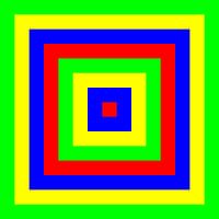 Vier vierkantjes, of kleurstrips, dubbel gelaagd.