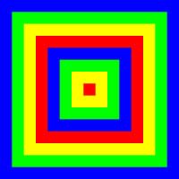 Vier vierkanten, oftewel kleurstrips, dubbel gelaagd.