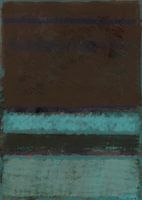 Digitaal schilderij met diep bruine en blauwgroene kleuren. geïnspireerd op de stijl van de wereldberoemde schilder Mark Rothko. Minimalistisch en abstract. Het schilderij bestaat uit meerdere lagen die elkaar deels overlappen.