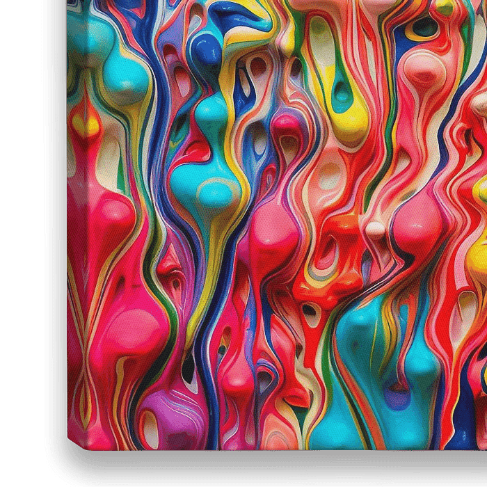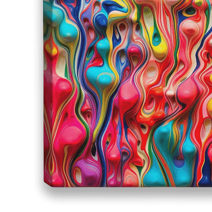 Kunstwerk met verschillende kleuren verf die zich een weg naar beneden banen.