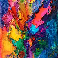 Een kunstwerk met een dynamische compositie, elke kleurvlek lijkt een eigen leven te leiden het kleurenpalet is intens en levendig waardoor een harmonieus maar tegelijkertijd chaotisch geheel ontstaat. De dikke lagen verf voegen textuur en diepte toe.