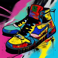 Dit sprankelende kunstwerk, gedrenkt in een explosie van levendige kleuren, is een eerbetoon aan de straatcultuur en popartbeweging. De sneakers, getransformeerd tot ware kunstwerken, stralen een magnetische energie uit die de aandacht van jonge zielen grijpt. Met een pulserende mix van graffiti-invloeden en modeflair, zijn de schoenen…
