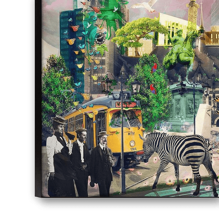 Colors of The Hague, een kleurrijke collage van meerdere eigen foto's geeft Den Haag met een aantal van zijn iconen weer,