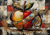 Colors of the Harvest - Dit moderne fruit schilderij toont een grote, gestileerde appel als centraal element. De appel is opgebouwd uit meervlakken, elk in verschillende kleuren en texturen, wat het een driedimensionaal en dynamisch gevoel geeft. De kleuren van de appel wisselen af van levendig rood, oranjerood tot subtiele gele en…