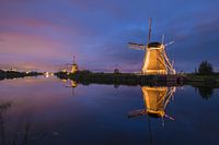 Ook deze foto is gemaakt tijdens de week waarin de Kinderdijkse molens verlicht zijn (Zie ook: Kinderdijk verlicht). Door de zonsondergang gloeide de lucht nog wat door waardoor er tijdens het blauwe uurtje toch nog wat kleur in de lucht zat. Deze foto is wat later op de avond genomen.