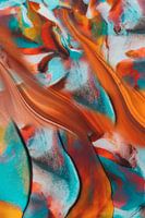 Abstracte kleurrijke kunst met voornamelijk oranje,blauw en turquoise tinten.