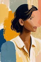 Abstract kunstwerk passend bij de kleur van het jaar van Flexa 2025. Flexa heeft verschillende kleurenpaletten gelanceerd waar dit schilderij op geïnspireerd is. Het is een abstract werk, met abstracte lijnen in blauw en roze tinten met een vrouwelijk portret.