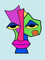 Digitaal werk van een abstract hoofd, speciaal gemaakt voor bij de trend "Pop of colours". Leuk detail zijn de stipjes in de oranje kleur op het gezicht, met een knipoog naar de Popart trend.Lekkere felle kleuren geven je huis een nieuwe energie. Gemaakt met een digitaal design programma.