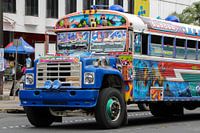 Koop de foto Coloured bus in Panama van Liesbeth Vogelzang als print op canvas, aluminium dibond, (ingelijste) fotoprint, behang en ArtFrame. Voor jou op maat geprint in Fine-Art kwaliteit.