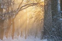 Korte winterperiode gehad in Nederland. In die ene week, kwamen op een dag mist en een dik pak sneeuw samen in het Limburgse land. Dit zorgde voor feeërieke sferen. De opkomende zorgde in combinatie met de mist voor prachtig warme harpen. Kou en warmte ontmoeten elkaar in één beeld. Als waarnemer liet ik mij meenemen naar feeërieke oorden. Op dat moment besef je weer, hoe mooi onze natuur is, ook dichtbij. Dit schouwspel was op nog geen kwartier lopen van huis. En het is een cliché, maar daarom niet waar, dat in elk onverwacht moment een mooie foto schuilt. Heel vaak korte momenten, maar met een gouden randje. Door het vast te leggen, hoop ik dat anderen een beetje meegenieten van het moment.