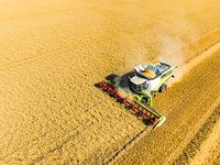 Koop de foto Combine oogst tarwe in de zomer gezien van opzij van Sjoerd van der Wal Fotografie op canvas, aluminium dibond, (ingelijste) fotoprint, behang en ArtFrame, op maat geprint in Fine-Art kwaliteit.