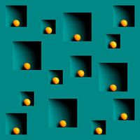 An abstract image with yellow orbs in an blue-green shelf.