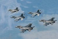Samengestelde foto van 5 F16's boven Leeuwarden.