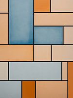 Abstracte geometrische kunst met lijnen en vormen in de tinten blauw en oranje. Ik vind dit zelf leuke kunst om te maken om dat er zoveel combinaties mogelijk zijn met kleuren en vormen.