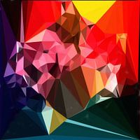 Abstract digitale gouache schilderij geometrische driehoeken in geel rood en blauw