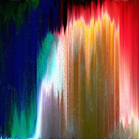 Abstract digitale gouache schilderij in rood groen geel oranje en blauw