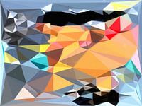 Abstract digitale gouache schilderij geometrische driehoeken in blauw geel groen oranje paars en zwart