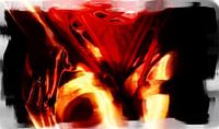 Abstract digitale gouache schilderij vrouwen lichaam in rode slipje, jarretelle en kousen in rood en geel tinten