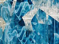 Abstract digitale gouache schilderij in blauw tinten zwart en wit