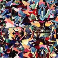 Abstract digitale gouache schilderij in paars oranje blauw rood groen geel en zwart