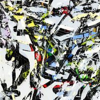 Abstract digitale gouache schilderij in blauw rood geel groen wit en zwart