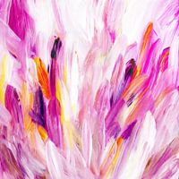 Abstract digitale gouache schilderij in paars rood oranje geel