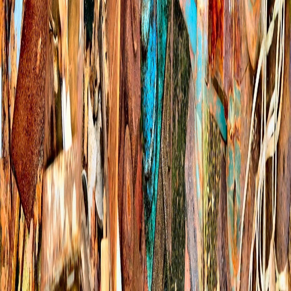 Een eindeloos lange reeks foto's van roestende metalen. gecomprimeerd tot een gordijn van kleuren.