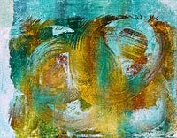 art abstrait aux couleurs prédominante de turquoise, ocre, or et brun