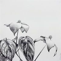 In de Japanse tuin in Den Haag trof ik deze plant. De eenvoud van deze bloem en de schutbladeren tegenover de generfde bladeren trof mij in het bijzonder. Een mooie tegenstelling.