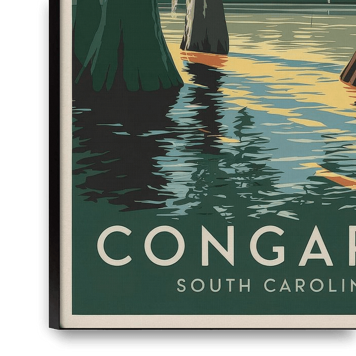 Zachte lichtstralen glinsteren op het stille water, terwijl majestueuze cipressen met hangend mos op de achtergrond uittorenen. Deze harmonieuze landschapstransformatie van Congaree ademt een rustgevende sfeer uit die ideaal is voor een woonkamer, waar het rust en nabijheid tot de natuur bevordert. Een blikvanger die verhalen vertelt en…