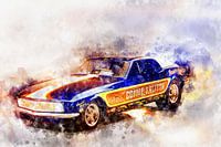 Illustratie van een serie legendarische dragsters en hot rods. Geschilderd met aquarellen op papier.