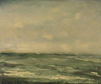 Marine met golven van een zee of oceaan, een ver uitzicht met een horizon tegen de wolken.