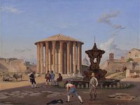 Het schilderij toont de Piazza della Bocca della Verità in Rome met de zogenaamde Tempel van Vesta (later vastgesteld dat het een tempel was van Hercules Victor, de Zegevierende Hercules). Op de achtergrond is de koepel van de Sint-Pieterskerk te zien, hoewel deze in werkelijkheid vanaf de betreffende plek nooit te zien is geweest.