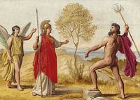 Constantin Hansen, Pallas Athene, gevolgd door de god van de overwinning Nike, geschillen met Poseidon, ca 1851 van Atelier Liesjes