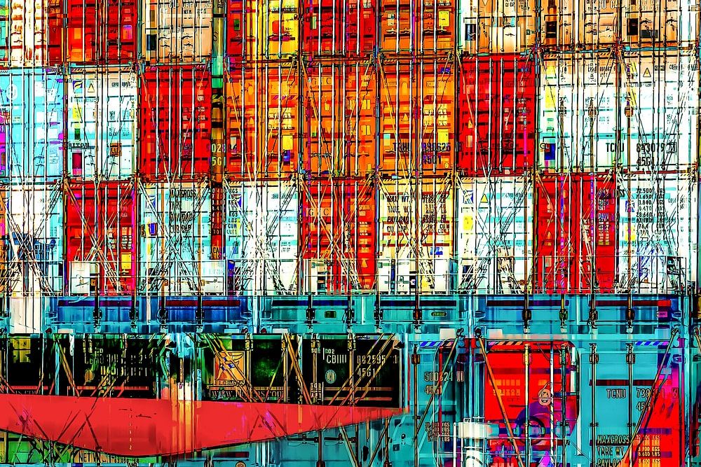 Het beeld is een mozaïekachtige compositie van verschillende containerterminals in de haven van Hamburg. De afzonderlijke delen van het beeld zijn harmonieus op elkaar afgestemd. Er is gekozen voor een licht vervagend en verzachtend effect om het beeld een lichter, minder technisch nauwkeurig karakter te geven. Het rode gebied in het onderste linker derde deel van de foto zorgt voor een harmonieuze compositie. Het doel was een beeld te creëren met een hoge mate van abstractie.