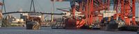 Containerhaven met vrachtschepen en kranen in Hamburg van Jonas Weinitschke
