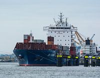Containerschepen afgemeerd in de haven van Rotterdam.