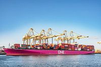 Een containerschip uit Hanoi van de Vietnamese rederij One Ocean Network Express in de haven van Rotterdam bij de containerterminal.
